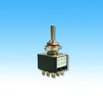 9P MINIATURE TOGGLE SWITCH (3PDT) ON-OFF-ON 120V 5A A:ON-OFF-(ON) B:(ON)-OFF-(ON)