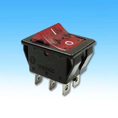 6P ILLUMINATED ROCKER SWITCH (DPDT) ON-ON 125V 15A (250V 10A) UL