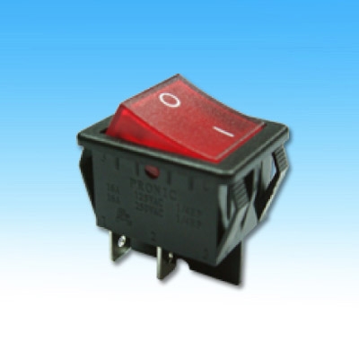 4P ILLUMINATED ROCKER SWITCH (DPST) ON-OFF 125V 16A (250V 16A) CSA.VDE