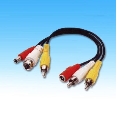 DC PLUG+F PLUG+RCA PLUG TO DC JACK+2xRCA PLUG A:2.1x5.5mm B:2.5x5.5mm