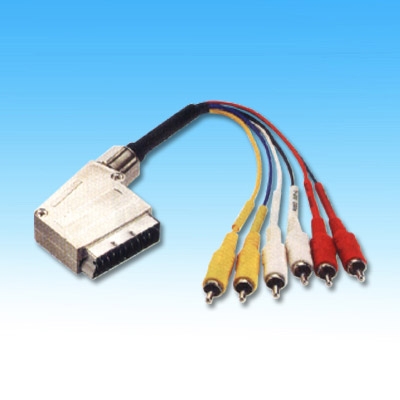 21P SCART PLUG SILVER PLATED TO 5xRCA PLUG